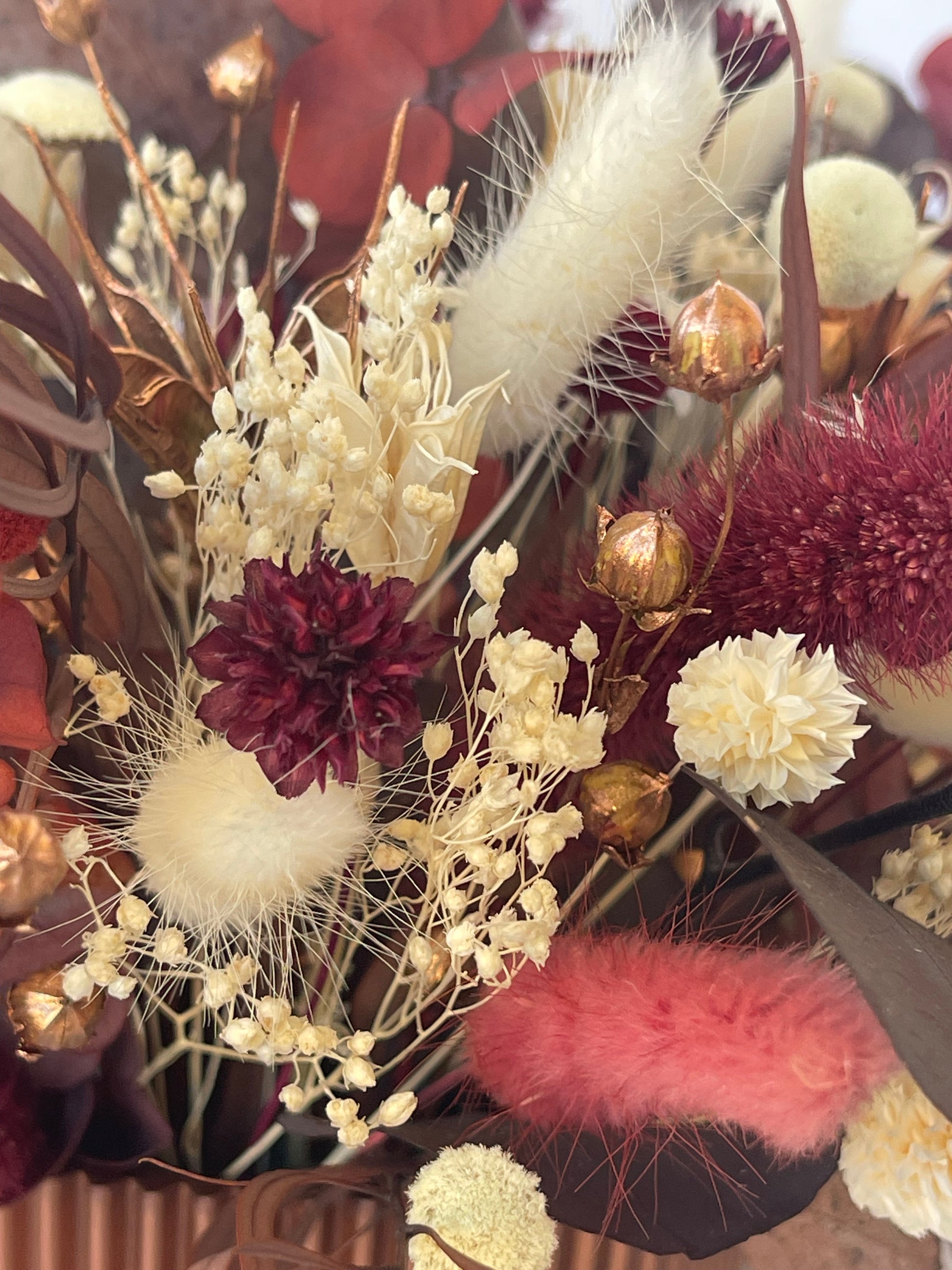 Due to the natural nature of preserved flowers, each arrangement is unique—slight variations in shape and tone make your piece truly one of a kind.