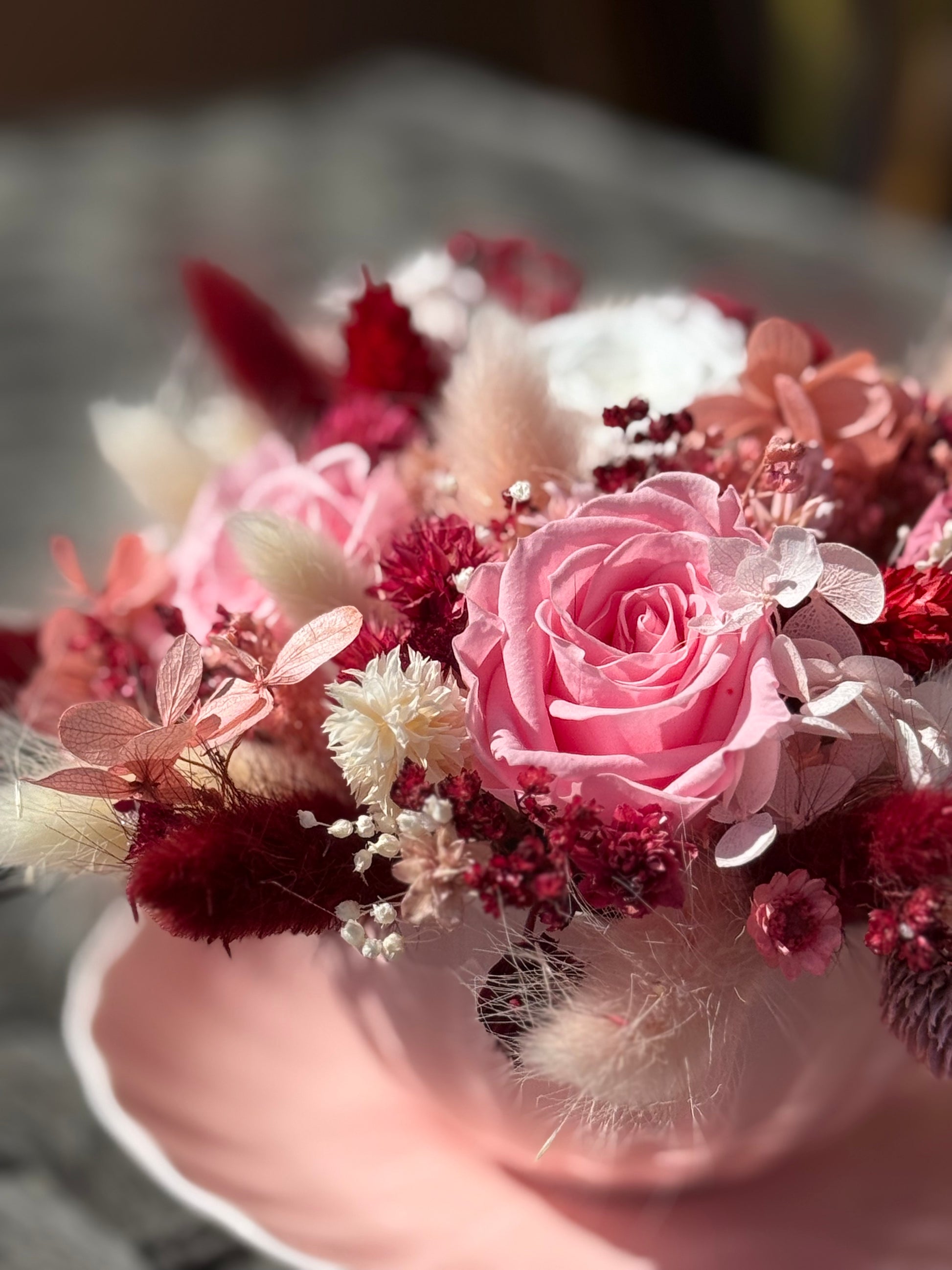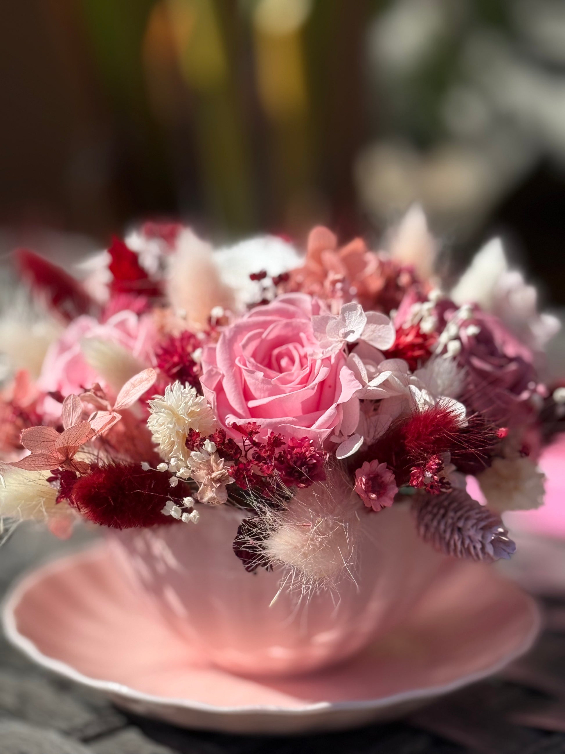 Due to the natural nature of preserved flowers, each arrangement is unique—slight variations in shape and tone make your piece truly one of a kind.